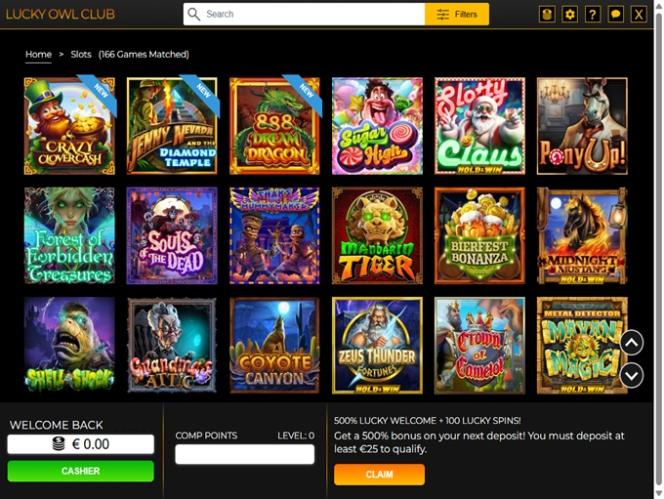 O Lucky Owl Club Casino não possui uma coleção enorme de slots, mas ainda assim conseguiu reunir uma seleção encantadora de jogos adequados para todos os tipos de jogadores. Há slots clássicos e tradicionais, bem como lançamentos inovadores, incluindo jogos compatíveis com jogadores dos EUA .