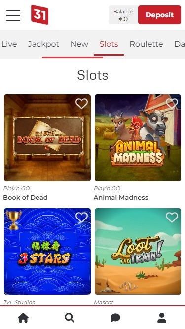 O Lucky31 Casino é operado por Net Entertainment, BetSoft, Evolution Gaming, Habanero Systems, iSoftBet, Oryx, Play'n GO, playson, Quickspin, Relax Gaming, Saucify, Thunderkick, Visionary iGaming, WM, Yggdrasil, Wazdan, GameArt, Booming Games, Stakelogic, Pragmatic Play, Nolimit City, Felt Gaming, Red Tiger Gaming, Booongo, Air Dice, LuckyStreak, Spinomenal, Fantasma Games, SYNOT Games, Revolver Gaming, Spinmatic, BGAMING, Evoplay, Electric Elephant Games, Bulletproof Games, Gluck Games, Mascot Gaming, Spearhead Studios, Swintt, Mancala Gaming, SmartSoft Gaming, Blue Guru Games, Lady Luck Games, Amusnet Interactive, CT Interactive, EveryMatrix, Push Gaming, Genii, Gamomat, Authentic Gaming, 4ThePlayer, AvatarUX, Gamevy, ReelPlay, Japan Technicals Games, Boomerang Studios, Hacksaw Gaming, Max Win Gaming, Bang Bang Games, Slotmill, Peter And Sons, Armadillo Studios, FlipLuck and Indigo Magic e seus jogos de cassino são oferecidos por meio de uma plataforma online que permite jogar diretamente no seu navegador. Um site para dispositivos móveis também está disponível, possibilitando o acesso ao cassino através de smartphones ou tablets.Blackjack