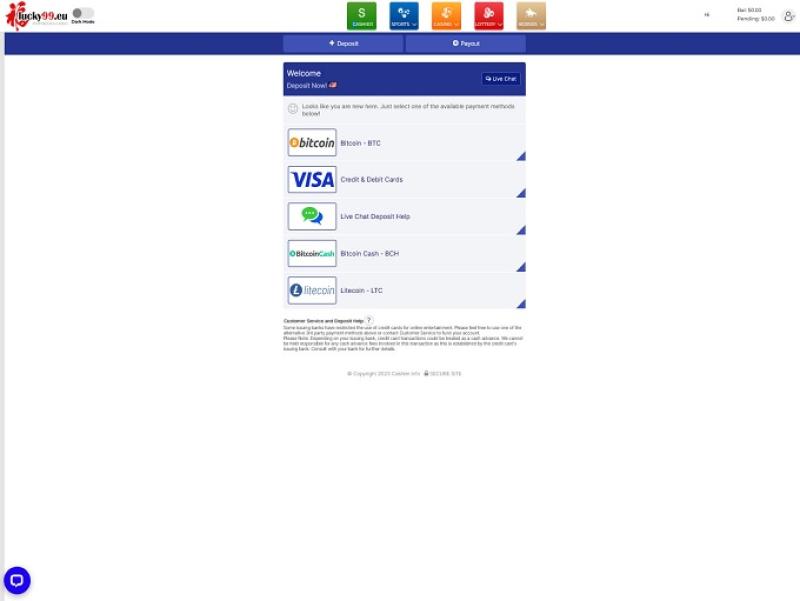 Lucky99 Casino não recebeu o endosso do Wizard of Odds.