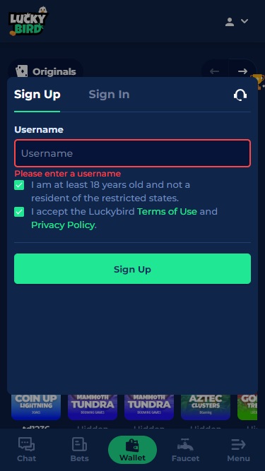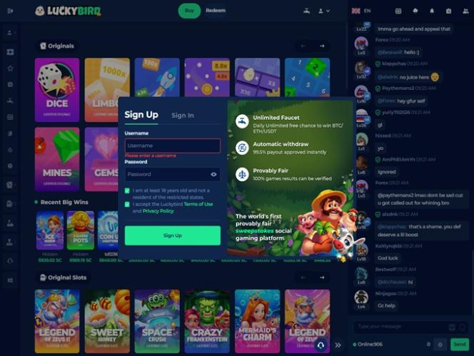 LuckyBird é um cassino social online que aceita jogadores da maior parte dos Estados Unidos, com exceção de Washington, Nevada, Idaho, Kentucky e Michigan.