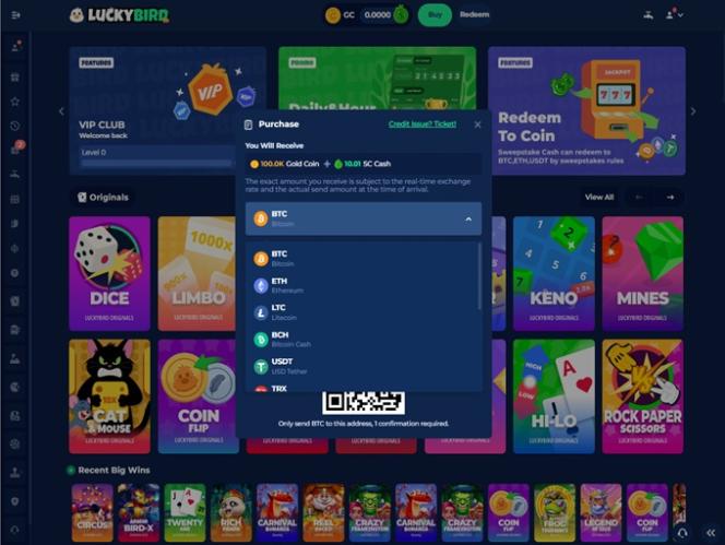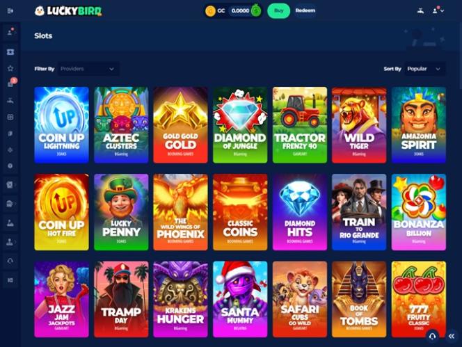 Uma possível razão para a seleção relativamente pequena de fornecedores de software da LuckyBird é que a marca desenvolve diversas versões originais de jogos que não podem ser jogadas em nenhum outro lugar. Isso inclui vários títulos instantâneos como Dice, Crash, Limbo, Plinko, Tower, Mines, CoinFlip, etc.