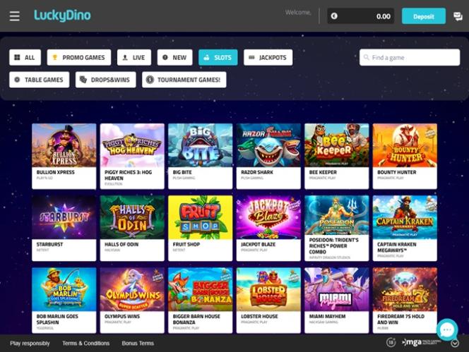 O LuckyDino Casino é um site de apostas online lançado em 2014, pertencente e operado pela NRR Entertainment Limited, funcionando como um cassino white label para a marca BetAt. O cassino foi lançado com uma biblioteca de centenas de jogos e tempos de pagamento muito rápidos, tornando o LuckyDino um excelente lugar para apostar.Informações do cassino