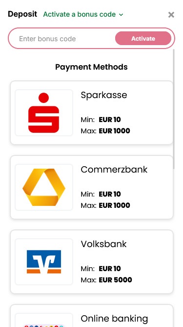 💰 Depósito mínimo€10/ €20 (cryptocurrencies)