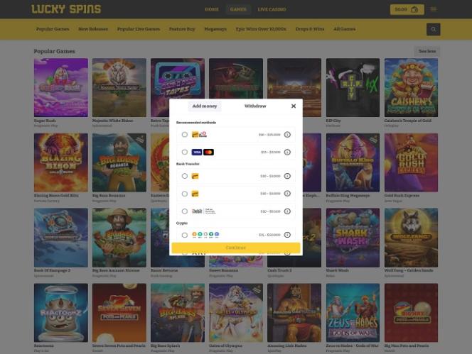 A primeira coisa que você vê ao acessar um site provavelmente já forma uma opinião, seja ela positiva ou negativa. No caso do cassino online LuckySpins, achamos que o design da plataforma é, no mínimo, inofensivo. Infelizmente, não há nada de único na aparência deste cassino, mas certamente não é o mais feio.