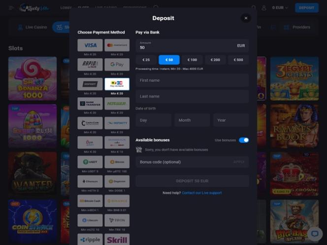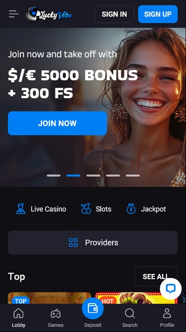 O LuckyVibe é totalmente responsivo e otimizado para um desempenho impecável tanto em dispositivos portáteis quanto em computadores pessoais. Uma boa conexão com a internet garantirá uma experiência de jogo ininterrupta, e acreditamos que muita diversão aguarda os jogadores neste cassino interessante com uma atmosfera agradável. Vamos verificar juntos se nossa primeira impressão se confirma após uma análise mais detalhada.