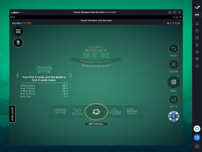| Lucky Blackjack | Ficar | Sim | Qualquer | 1 | Não | - | - | Não | ? | 1 | Não |