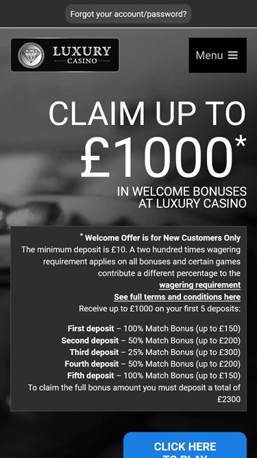Abaixo encontra-se uma lista das promoções atualmente oferecidas no Luxury Casino.