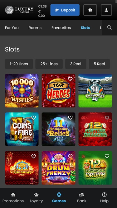 Os caça-níqueis compõem a maior parte da biblioteca de jogos do Luxury Casino, com centenas de títulos da Microgaming disponíveis nos cassinos virtuais. Os jogos variam em qualidade e recursos, com opções mais complexas como jogos de escolha, rodadas grátis, wilds expansíveis e muito mais.