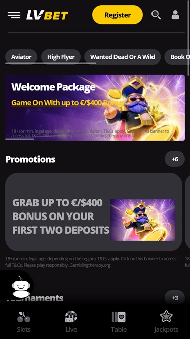 A LV Bet oferece uma boa variedade de slots, com quase mil jogos de diversos desenvolvedores renomados como Microgaming, Play'n GO e Thunderkick. Há uma série de recursos e temas diferentes para escolher, além de jackpots progressivos para ganhar. Slots para dispositivos móveis também estão disponíveis, permitindo que você jogue em qualquer lugar com conexão de dados.
