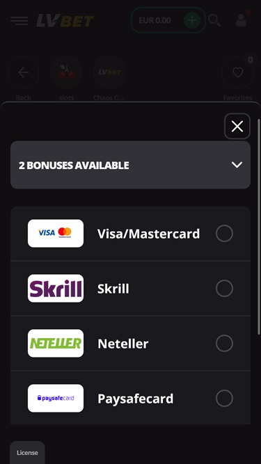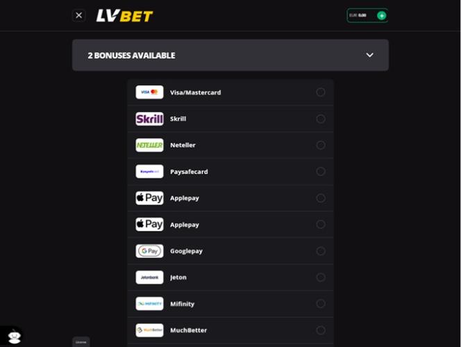 O sistema bancário da LV Bet é razoável, embora um pouco lento. O site aceita depósitos e saques por cartão de crédito, carteira eletrônica e transferência bancária, com pagamentos que levam até 3 dias úteis para serem concluídos. O limite máximo de saque diário no site é de € 5.000.