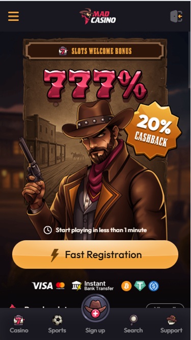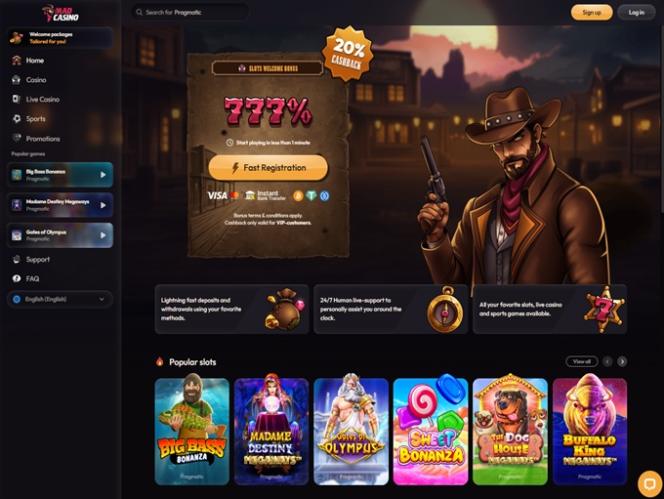 O Mad Casino é um site de jogos de azar moderno que lançou seu site para jogadores em 2025. Desde a sua criação, a marca conquistou um grande público ao oferecer a possibilidade de pagamento com criptomoedas e uma gama completa de atividades e jogos de cassino, como caça-níqueis, jogos com crupiês ao vivo, jogos de mesa e opções de apostas esportivas, além de uma seleção de bônus concisa, porém robusta.