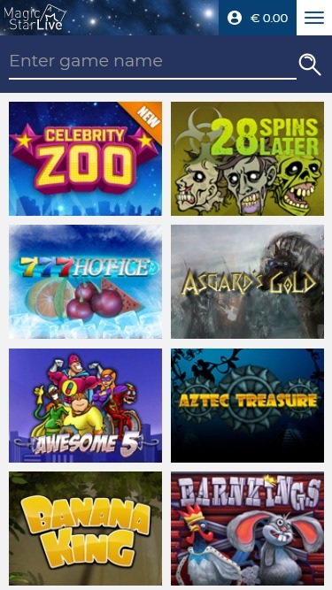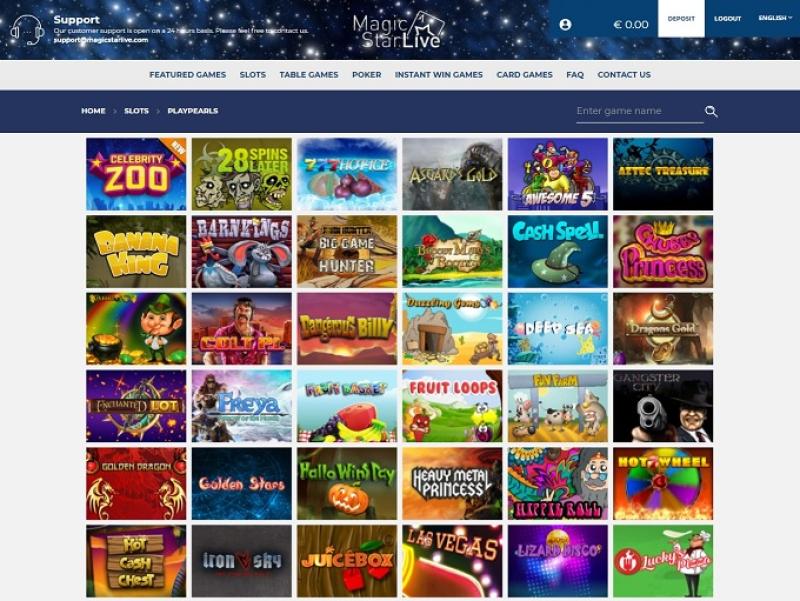 O Magic Star Live Casino é fornecido pela BetSoft, The Art Of Games, Endorphina, PlayPearls, Spinomenal, Fugaso, We Are Casino and Groove Gaming e seus jogos são oferecidos por meio de uma plataforma de jogo instantâneo baseada na web, bem como por meio de um site móvel que permite jogar em qualquer lugar.Outros jogos