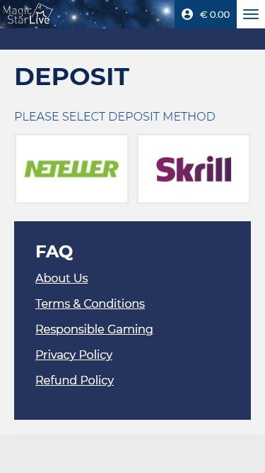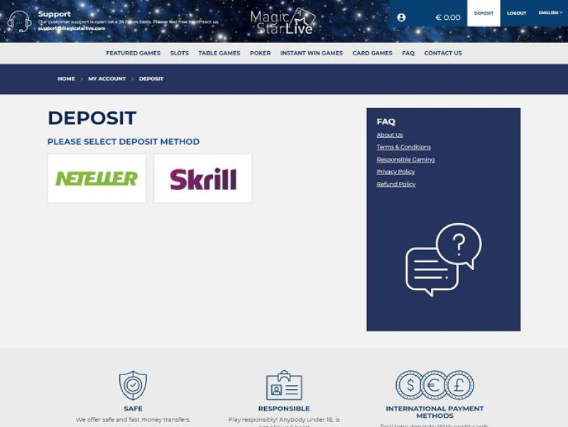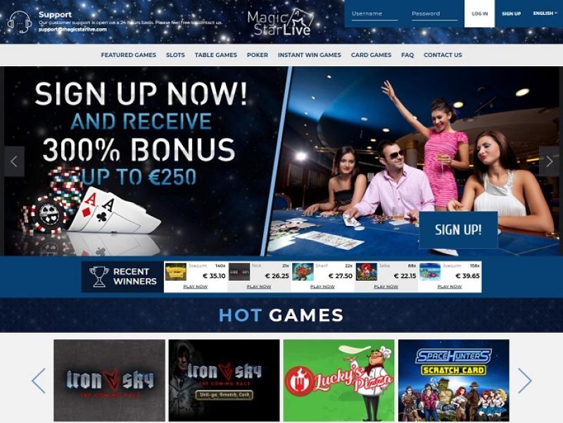 Magic Star ao vivo, vi várias experiências diferentes de jogadores, me inscrevi lá há um tempo, com um bônus grátis que eles me deram, enviei um e-mail para eles para dizer que demorou cerca de 9 horas para eles adicionarem, esperava uma resposta mais rápida sobre isso. Eles oferecem jogos estranhos, mas os pagamentos são justos, até onde eu experimentei. Não há chat ao vivo, o que é muito triste, e todo o tráfego vai por e-mail. Não tenho nenhuma experiência com saques lá, mas até onde eu sei, o processamento não é rápido, pode levar de 1 a 4 dias para carteiras eletrônicas, o que não é muito atraente para mim colocar dinheiro, o site parece bom e as coisas estão funcionando rápido, mas não tenho 100% de certeza sobre o serviço deles para os jogadores.