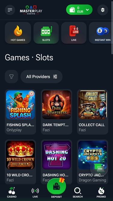 Ao criar uma conta aqui, você terá acesso a uma vasta coleção de jogos variados. O MasterPlay permite que os jogadores naveguem por diversas categorias e subcategorias de vários gêneros, incluindo jogos digitais como caça-níqueis e jogos com crupiê ao vivo como blackjack e roleta.