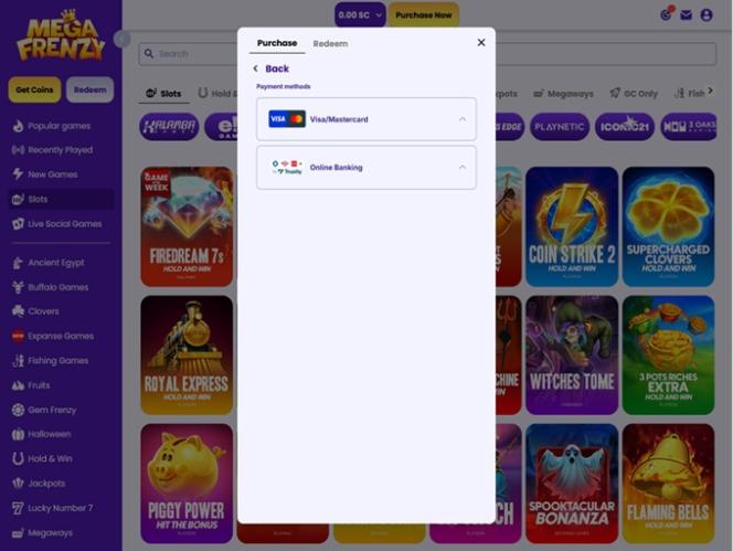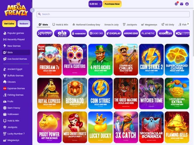 Assim como em qualquer outro cassino moderno com sorteios, o Mega Frenzy também oferece uma ampla seleção de caça-níqueis no estilo cassino para você se divertir. A biblioteca inclui todas as principais categorias e gêneros, como caça-níqueis Megaways, lançamentos clássicos, as novidades, jackpots, caça-níqueis de pesca e muito mais.