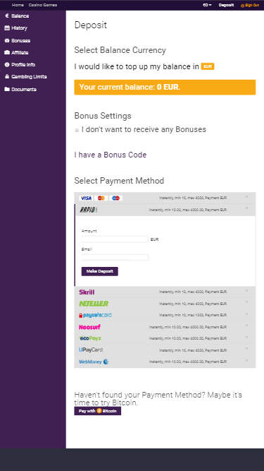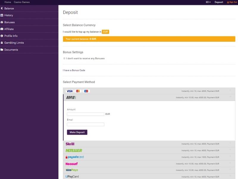 O cassino Megawins não é um cassino onde você pode ganhar uma mega vitória. O nome é meio chamativo, mas este é mais um cassino da Direx nv. Eles têm uma ótima oferta de boas-vindas, mas para por aí. Fiz alguns depósitos e solicitei a oferta de boas-vindas, mas depois disso nunca mais recebi nenhum bônus deles. Nunca recebi nenhum brinde após meus depósitos e esse é o principal motivo pelo qual nunca mais joguei lá. O pagamento foi feito rapidamente, mas é a única coisa que posso dizer sobre este.