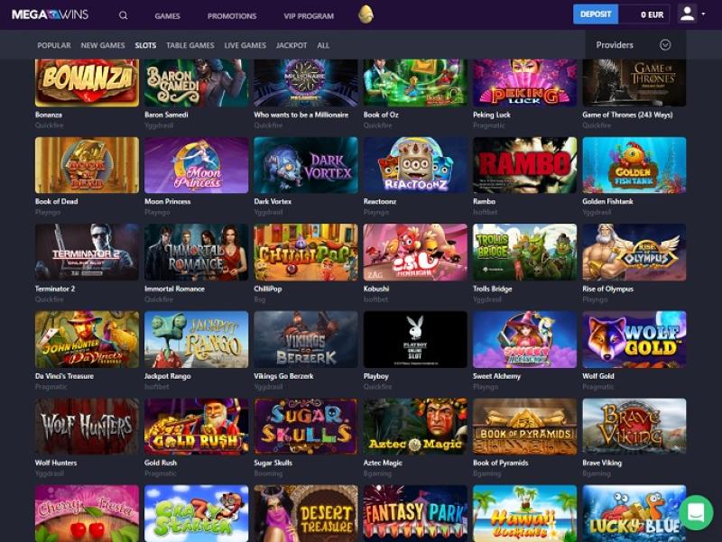 O Megawins Casino oferece centenas de slots, com jogos de desenvolvedores como Microgaming, NetEnt, BetSoft e muitos outros. Há jogos exclusivos e licenciados, incluindo títulos como Jurassic Park, Scarface, Zombies e muitos mais. O Megawins também oferece uma série de jackpots progressivos e, como o cassino é compatível com dispositivos móveis, você pode girar os rolos no seu celular.