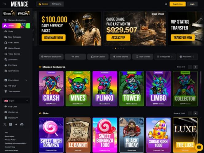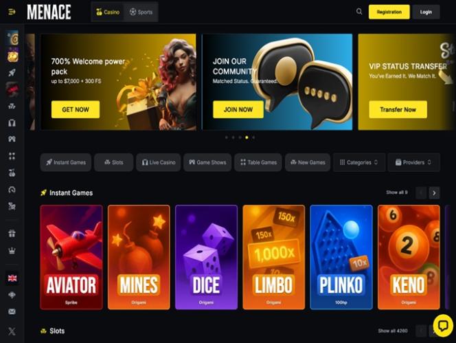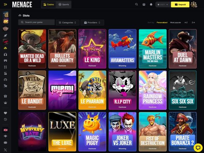 O processo de cadastro no Menace King é simples e rápido, e você pode esperar transações de pagamento ágeis, um pacote de boas-vindas do cassino, suporte 24 horas por dia, 7 dias por semana, recompensas VIP e outros bônus e vantagens. Tudo isso foi mais do que suficiente para uma excelente primeira impressão, então vamos explorar as ofertas do cassino com mais detalhes. Fique ligado!