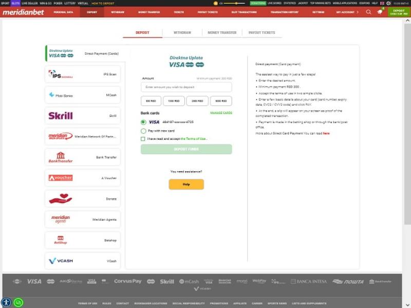 Meridianbet é um site de apostas online operado pela Meridian Gaming Limited, sediada em Malta. O site oferece uma opção completa, disponibilizando apostas esportivas e jogos de cassino. Há muitos pontos positivos, como o cassino com uma vasta seleção de jogos, ótimas promoções e bônus que não expiram.Informações do cassino