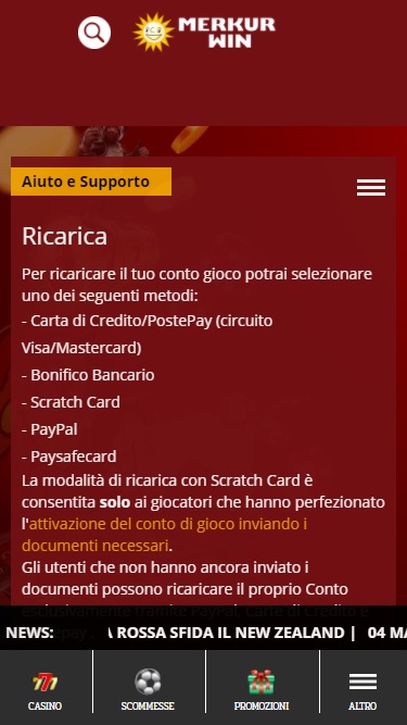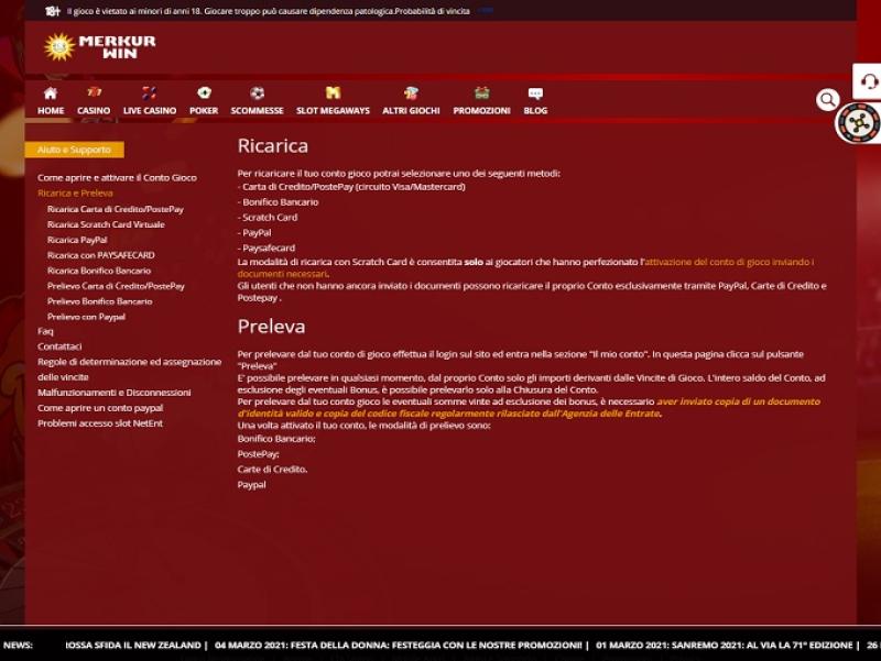 Quanto ao Merkur Win, tentei me registrar algumas semanas atrás, mas depois de inserir todas as minhas informações, apareceu a mensagem de que eu já tinha uma conta. Então, entrei em contato com o suporte, e o operador me disse que eu realmente tinha uma conta, pois o Merkur Win nada mais é do que o antigo Vuoiscommettere. Se você já tinha uma conta no Vuoiscommettere e quer jogar no Merkur Win, basta entrar em contato com o suporte e pedir explicitamente que atualizem seus dados na nova conta. Como cassino, é interessante por causa de seus cinco provedores de caça-níqueis e outras seções, incluindo apostas, pôquer e bingo, mas não tanto por suas promoções.