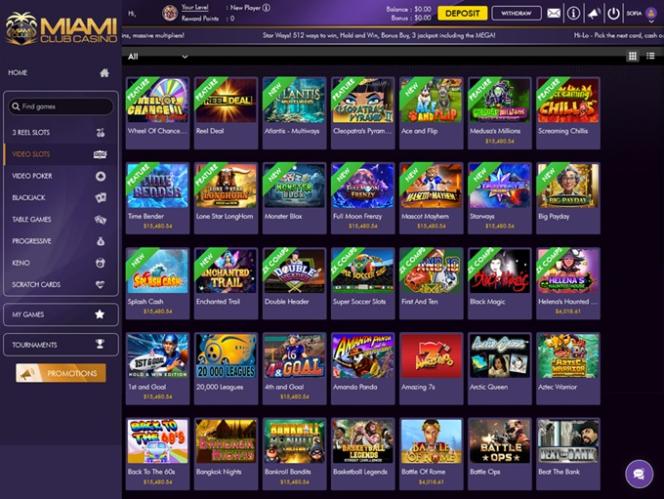 O Miami Club é alimentado por Arrows Edge, NextGen, Wager Gaming and Dragon Gaming e é um dos poucos cassinos online que utilizam esse software. O software permite a realização de torneios, que são bastante completos e incluem torneios gratuitos e diários.