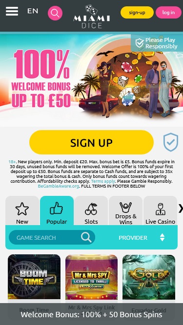 Miami Dice soa como se alguém tivesse cometido um erro ao tentar criar uma imitação do popular drama policial dos anos 80 (que mostrava uma dupla de policiais combatendo criminosos que ousavam transportar cocaína para Miami), e não como um cassino online que conta com alguns dos maiores desenvolvedores do mundo. Apesar do nome estranho, Miami Dice surpreende por conseguir entregar o que promete na maioria dos aspectos principais, embora certamente haja espaço para melhorias.