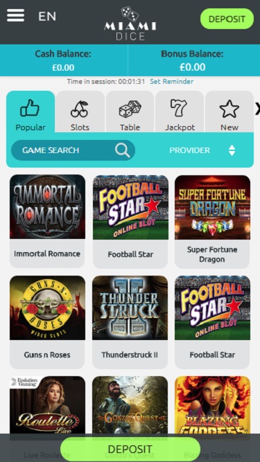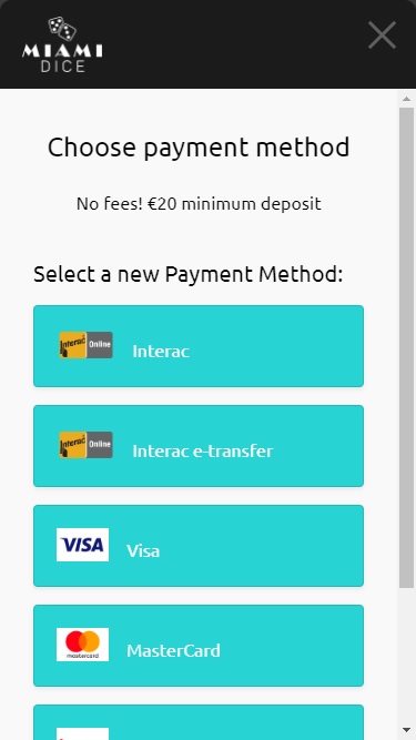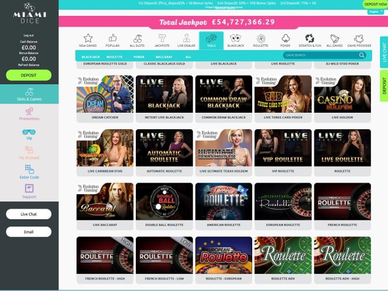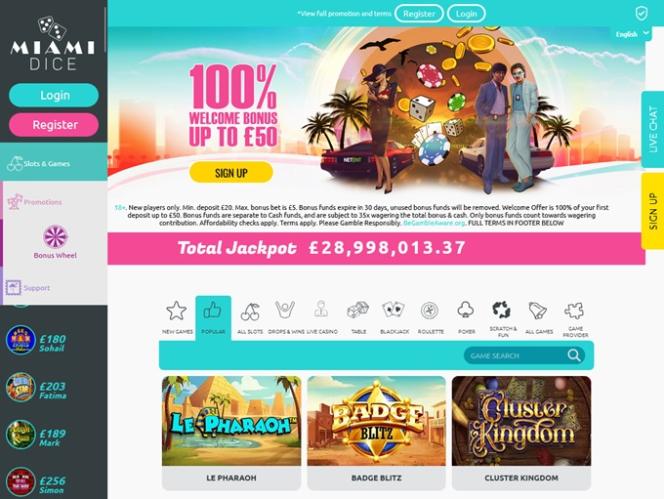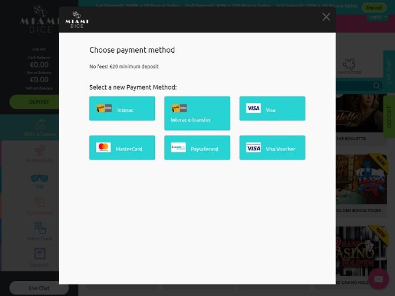Abaixo está uma lista das promoções atualmente oferecidas no Miami Dice Casino.