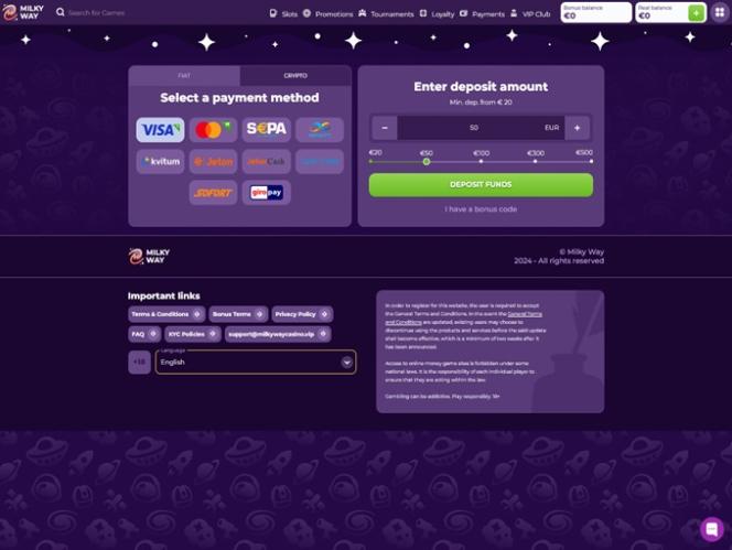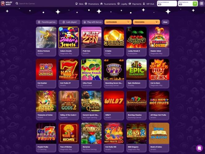Temos certeza de que os jogadores sempre gostam de ver que um operador de cassino os valoriza, oferecendo um generoso programa de fidelidade. O Milky Way Casino oferece um programa de fidelidade interessante e vai além, garantindo que todos os novos jogadores e outros jogadores ativos que gostam de resgatar promoções e bônus do cassino tenham diversas opções à sua escolha.