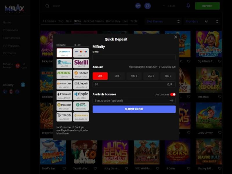 O Mirax Casino oferece promoções atraentes tanto para iniciantes quanto para jogadores experientes.