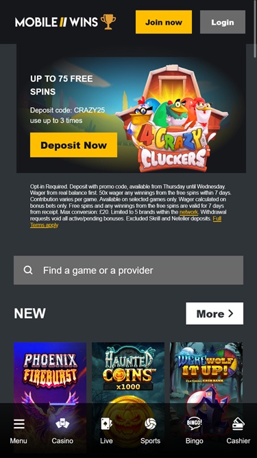 Não há nada de especial sobre as vitórias no celular, parece vir do mesmo grupo (hippo zino hippo drome casino etc.) e eu não gosto do grupo deles, pagamentos muito lentos, os sites não são nada de especial, mas chatos.