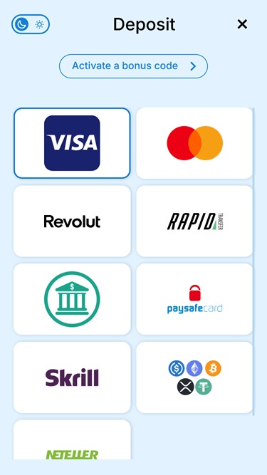 Se o depósito for feito com cartão de crédito/débito, os fundos serão creditados somente após o cassino receber a aprovação e o código da instituição de pagamento.