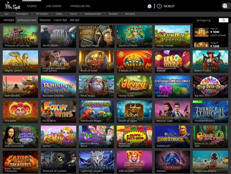 O Mr Spil Casino oferece uma ampla variedade de slots de vídeo, com jogos de alguns dos melhores desenvolvedores do mundo. Também estão disponíveis jackpots progressivos, que podem pagar valores na casa dos seis e sete dígitos.