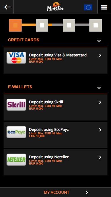 Estou satisfeito com o sistema bancário do Mr Win Casino, que oferece opções como cartão de crédito, carteiras eletrônicas e transferência bancária. O site exige um prazo de 48 horas para o processamento dos ganhos, o que é inconveniente, mas os pagamentos via carteira eletrônica são processados instantaneamente após esse período. Há um limite mensal de € 20.000 para saques, embora não esteja claro se esse limite se aplica a jackpots progressivos.