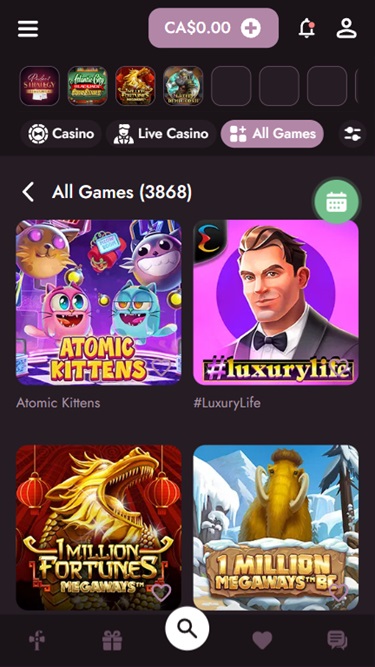 A plataforma do cassino é acessível em todos os dispositivos disponíveis e apresenta um design elegante, com uma atmosfera agradável que nos agradou desde o primeiro momento. Os jogadores podem contar com um processo de cadastro simples e direto e uma interface intuitiva que garante fácil navegação.