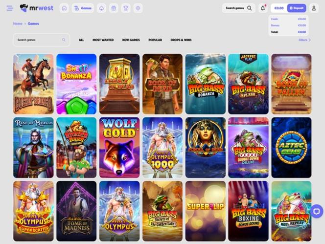 Por exemplo, o MrWest Casino apresenta um extenso catálogo de jogos com mais de 3.000 títulos exclusivos e mais de 30 fornecedores de software . É importante destacar também que a maioria dos desenvolvedores de software presentes são considerados alguns dos melhores do setor, pois são conhecidos por produzir apenas jogos da mais alta qualidade, com temas e mecânicas envolventes.