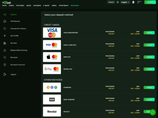 O sistema bancário é diversificado e razoavelmente rápido, oferecendo aos jogadores a possibilidade de depositar e sacar fundos por meio de transferência bancária, Entropay, Maestro, MasterCard, Skrill, Neteller, Paysafecard, Visa, ecoPayz, AstroPay e Euteller. Há um limite de saque semanal de US$ 2.500 e um tempo de espera de 48 horas para o processamento dos ganhos. Já os pagamentos para carteiras eletrônicas são feitos em 24 horas, o que é razoável.