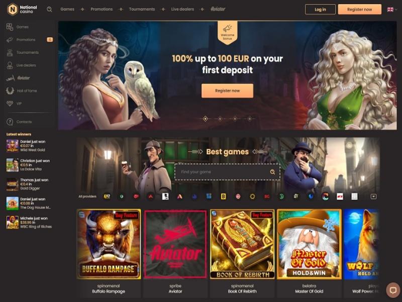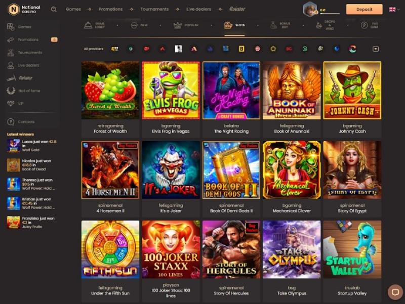 Endorphina, Belatra, Evoplay Entertainment , Push Gaming, EGT, ELK Studios, Realistic, Tom Horn Gaming e Yggdrasil são alguns dos inúmeros nomes que fizeram parceria com o National Casino.