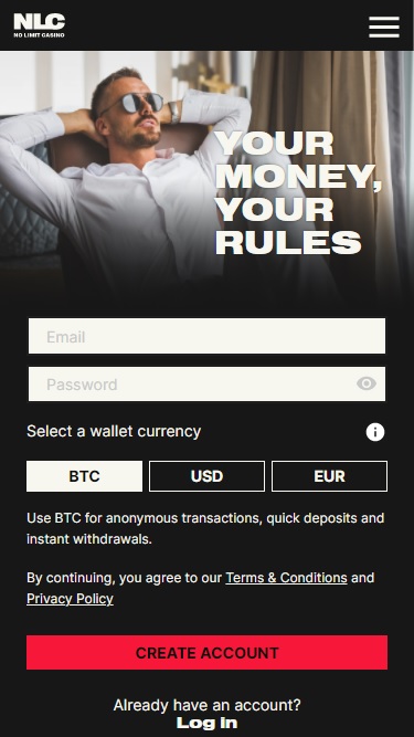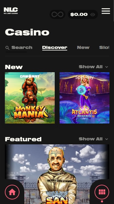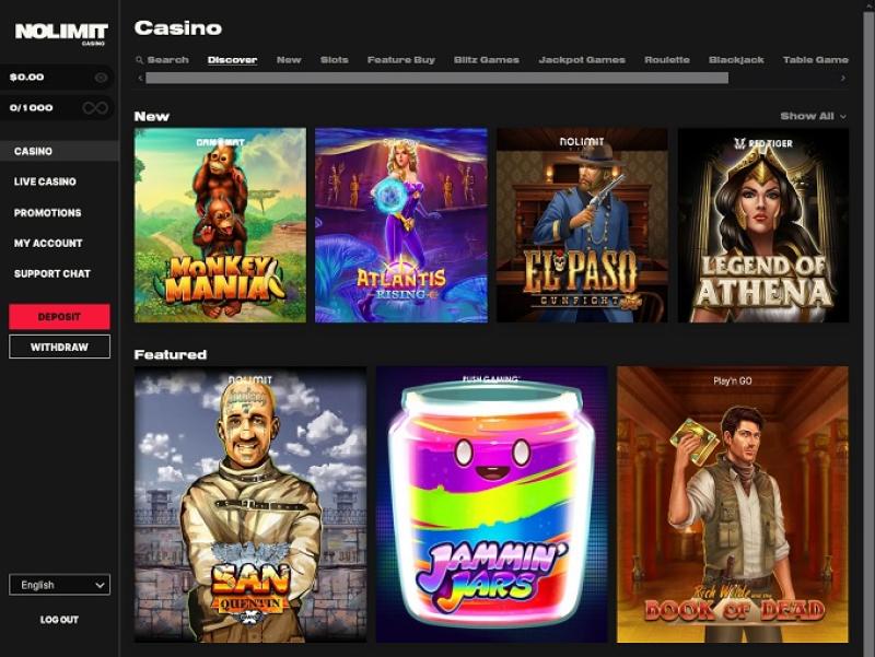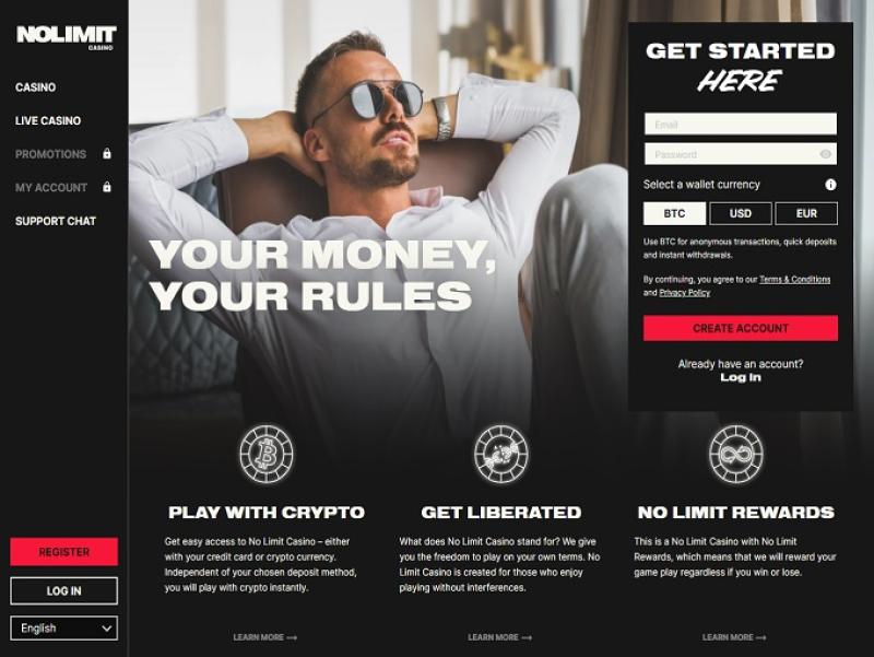 Com um design minimalista e escuro, o cassino multilíngue No Limit Casino exibe o slogan "Seu dinheiro, suas regras" como seu principal lema na página inicial. Um menu de navegação principal bastante intuitivo está sempre localizado no lado esquerdo.