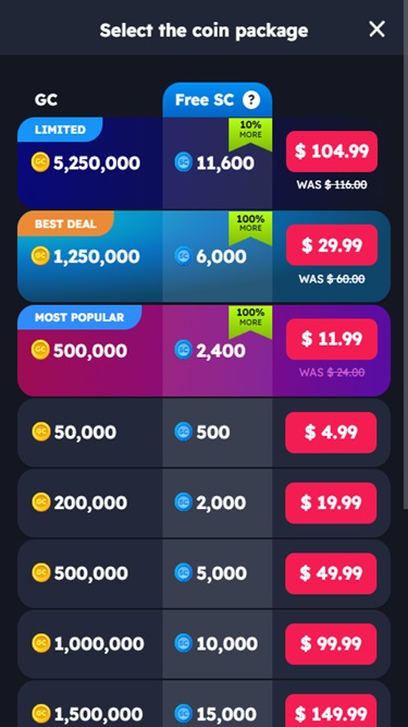 Infelizmente, os jogadores não poderão jogar jogos de mesa clássicos como blackjack , pôquer , roleta e bacará , então aqueles que buscam uma experiência mais tradicional podem ficar um pouco decepcionados. O NoLimitCoins também não oferece jogos com crupiê ao vivo. Considerando tudo, essa é uma variedade aceitável de jogos, especialmente por se tratar de um cassino social. Com o tempo e o crescimento da marca, esperamos que a oferta se torne muito mais ampla e diversificada.