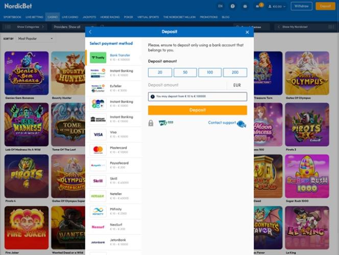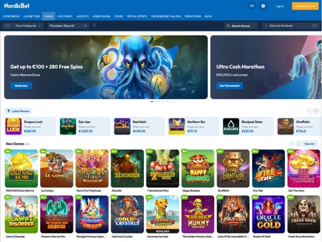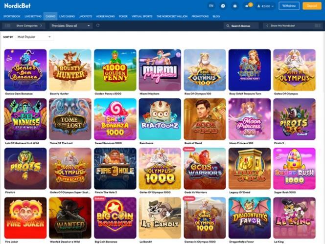 O NordicBet Casino é alimentado por Microgaming, Net Entertainment, Playtech, 1x2gaming, Barcrest, Big Time Gaming, ELK Studios, Evolution Gaming, EYECON, iSoftBet, lightningboxgames, Novomatic, Oryx, Play'n GO, playson, Quickspin, Relax Gaming, Thunderkick, Yggdrasil, Endorphina, Wazdan, Realistic Games, Betgames, Booming Games, Stakelogic, Pragmatic Play, Nolimit City, Red Tiger Gaming, IGT, Fantasma Games, SYNOT Games, Kalamba, Triple Edge Studios, Northern Lights Gaming, Evoplay, Stormcraft Studios, Switch Studios, Bulletproof Games, All41 Studios, Gluck Games, Gameburger Studios, Pulse 8 Studios, Neon Valley Studios, Golden Rock Studios, Swintt, Shuffle Master, SpinPlay Games, HungryBear Gaming, SmartSoft Gaming, Blue Guru Games, On Air Entertainment, Buck Stakes Entertainment, Games Global, Reevo, Wizard Games, Ash Gaming, Bally Technologies, bluberi, Blueprint Gaming, Greentube, Leander Games, NextGen, NYX Interactive, Pariplay, Push Gaming, WMS, Inspired Gaming, SG Interactive, Gamomat, Red7Mobile, CORE Gaming, Scientific Games, Side City Studios, Authentic Gaming, Bally Wulff, Iron Dog Studio, Old Skool Studios, Foxium, Betdigital, Just For The Win, Reflex Gaming, PearFiction Studios, Apollo Games, Wild Streak Gaming, Slingshot Studios, Fortune Factory Studios, 4ThePlayer, AvatarUX, Gamevy, Crazy Tooth Studio, NetGaming, ReelPlay, Alchemy Gaming, Rarestone Gaming, Snowborn Games, Boomerang Studios, Hacksaw Gaming, Max Win Gaming, Gold Coin Studios, Bang Bang Games, Half Pixel Studios, Slotmill, Peter And Sons, Aurum Signature Studios, Lucksome Gaming, Religa, Area Vegas, RAW iGaming, ELA Games, Betradar, Wishbone Games, Apparat Gaming, Spribe, Circular Arrow, Print Studios, HammerTime Games, Four Leaf Gaming, INO Games, Nailed It! Games, Atomic Slot Lab, Neko Games, Reel Kingdom, Oros Gaming, Indigo Magic, Light & Wonder, Kitsune Studios and Sneaky Slots e seus jogos são oferecidos por meio de uma plataforma baseada na web, bem como por meio de um site móvel, que estende a experiência de jogo para seu smartphone ou tablet.