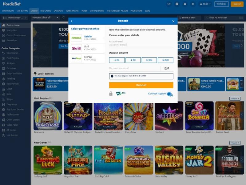 O NordicBet Casino é alimentado por Microgaming, Net Entertainment, Playtech, BetSoft, 1x2gaming, Barcrest, Big Time Gaming, ELK Studios, Evolution Gaming, Genesis Gaming, Habanero Systems, iSoftBet, lightningboxgames, Novomatic, Oryx, Play'n GO, playson, Quickspin, Rabcat, Relax Gaming, Thunderkick, Yggdrasil, Endorphina, Wazdan, Realistic Games, GameArt, Betgames, Booming Games, Stakelogic, Pragmatic Play, Nolimit City, Felt Gaming, Red Tiger Gaming, IGT, Spinomenal, Red Rake Gaming, Skillzzgaming, Fantasma Games, SYNOT Games, FUGA Gaming, Kalamba, Sigma Gaming, Skywind, Triple Edge Studios, Northern Lights Gaming, Stormcraft Studios, Switch Studios, Electric Elephant Games, Pocket Games Soft, Bulletproof Games, All41 Studios, Gluck Games, Gameburger Studios, Pulse 8 Studios, Neon Valley Studios, Golden Rock Studios, Spearhead Studios, Swintt, Shuffle Master, SpinPlay Games, Real Dealer Studios, GONG Gaming, Blue Guru Games, Lady Luck Games, Buck Stakes Entertainment, Design Works Gaming, Games Global, Wizard Games, 2by2 Gaming, Ash Gaming, Bally Technologies, bluberi, Blueprint Gaming, Greentube, Leander Games, NextGen, NYX Interactive, Pariplay, Push Gaming, WMS, Inspired Gaming, SG Interactive, Gamomat, Red7Mobile, CORE Gaming, Scientific Games, RFranco Group, Side City Studios, MGA, Authentic Gaming, Bally Wulff, Iron Dog Studio, Old Skool Studios, Foxium, Betdigital, Just For The Win, Reflex Gaming, PearFiction Studios, Apollo Games, Wild Streak Gaming, Slingshot Studios, Fortune Factory Studios, RubyPlay, 4ThePlayer, AvatarUX, Gamevy, Crazy Tooth Studio, NetGaming, High 5 Games, ReelPlay, Japan Technicals Games, Alchemy Gaming, Rarestone Gaming, BB Games, Snowborn Games, Boomerang Studios, Hacksaw Gaming, Max Win Gaming, Gold Coin Studios, Bang Bang Games, Slotmill, SilverBack Gaming, Peter And Sons, Eurostar Studios, Aurum Signature Studios, Lucksome Gaming, Religa, Area Vegas, RAW iGaming, Leap Gaming, Betradar, Indigo Magic and Sneaky Slots e seus jogos são oferecidos por meio de uma plataforma baseada na web, bem como por meio de um site móvel, que estende a experiência de jogo para seu smartphone ou tablet.