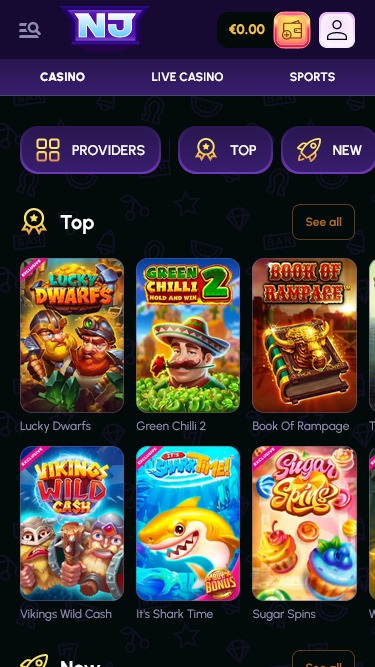 Como mencionado anteriormente, o Novajackpot possui uma plataforma moderna e todo o seu conteúdo é extremamente bem estruturado. Todos os jogos disponíveis estão organizados em três seções: Cassino, Cassino ao Vivo e Jackpots.