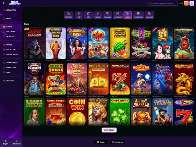 Aqui estão alguns dos jogos que os jogadores podem encontrar no Novajackpot Casino: Woolly Wilds MAX, Dark Summoning, Bandidos Cash, Vikings Wild Ca$h, Winning Clover 5 Extreme, Chaos Crew II, Ed's Gun, Gluttony, Wolf Fang - The Origins, Green Chilli, Silent Samurai: Mega Ca$h Collect, Book of Gold Multichance, Moon of RA - 3x3 Running Wins, Fortune Three, Sahara Nights, Golden Dragon Inferno, Cash Streak e muito mais.