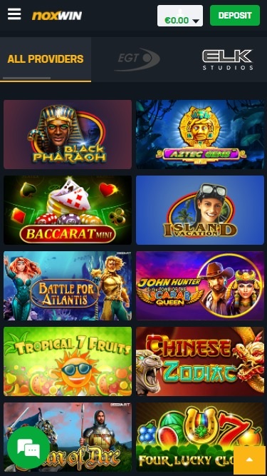 O Noxwin Casino é alimentado por ELK Studios, Ezugi, Thunderkick, GameArt, Pragmatic Play, Spinomenal, Platipus Gaming, BGAMING, Evoplay, Mascot Gaming, Mancala Gaming, SmartSoft Gaming, Amusnet Interactive, CT Interactive, Mr Slotty and Onlyplay , que oferece uma vasta gama de jogos através da sua plataforma web. Os jogadores podem aceder ao site através dos seus computadores ou dispositivos móveis, uma vez que não é necessário efetuar qualquer download.Outros jogos