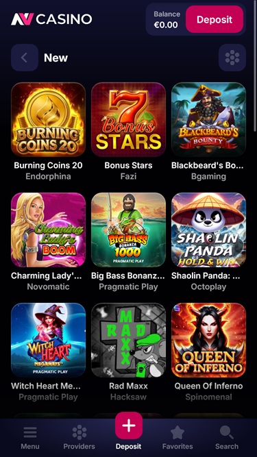 A lista de parceiros que fornecem conteúdo de jogos de azar de alta qualidade para este interessante cassino é extensa. Alguns nomes que você provavelmente reconhecerá são Pragmatic Play , Novomatic, Spinomenal, Ezugi, Endorphina , entre outros. Há também diversas outras marcas que oferecem ao NV Casino excelentes jogos de cassino online, desde clássicos consagrados até lançamentos inovadores criados para atender às necessidades dos jogadores modernos.
