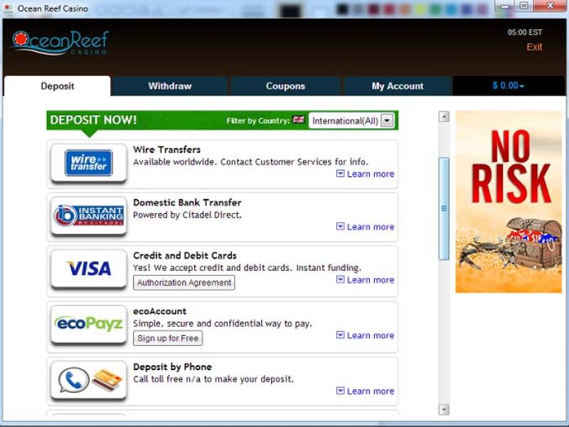 O Ocean Reef Casino é um cassino online lançado em 2015. Operado pela Sun Gaming Services NV, é um site irmão do Jackpot Jungle. O cassino é conhecido por sua seleção de jogos padrão da RTG, bem como pelos altos requisitos de apostas em bônus.Informações do cassino