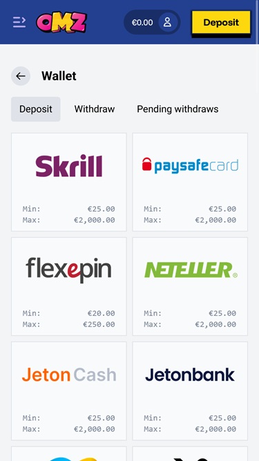 Opções bancárias no OhMyZino Casino