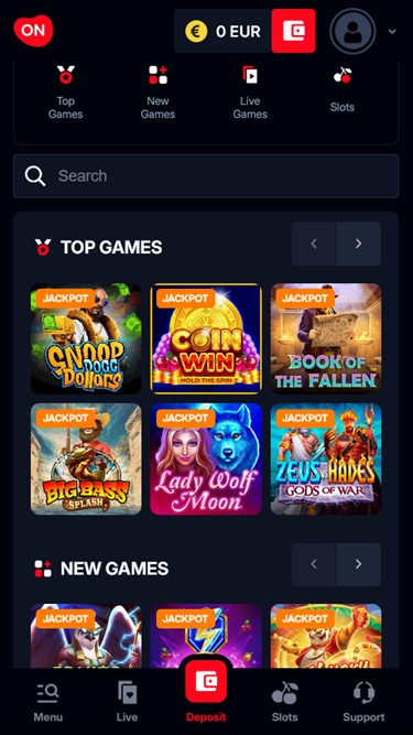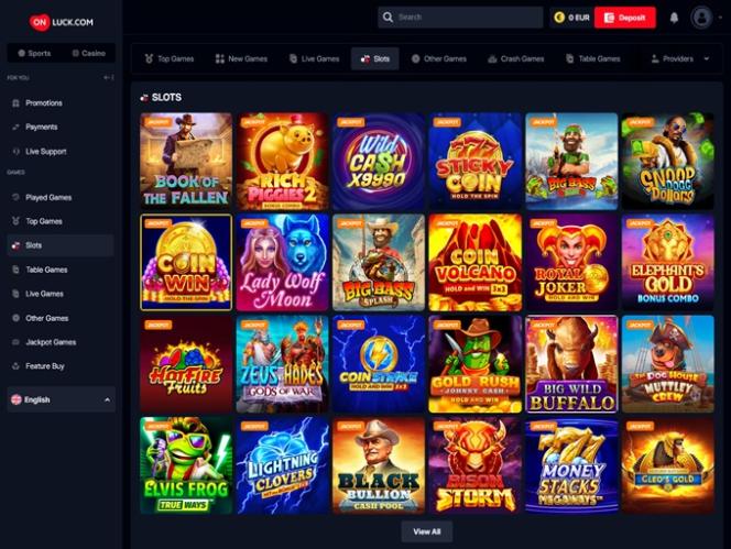 Na seção de Slots, a Onluck incluiu literalmente milhares de jogos disponíveis para escolher, com temas atraentes, mecânicas empolgantes e todas as configurações de rolos possíveis, e novos títulos também são adicionados regularmente.