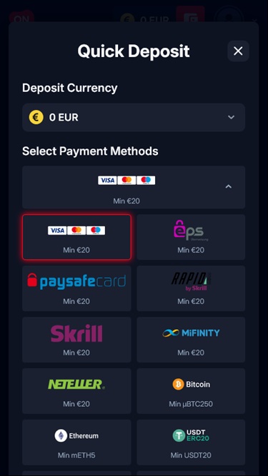 Existe também uma oferta de bônus em criptomoedas para novos jogadores. No entanto, lembre-se de que jogadores de Ontário não são elegíveis para esta promoção.