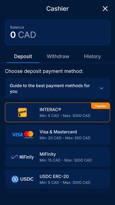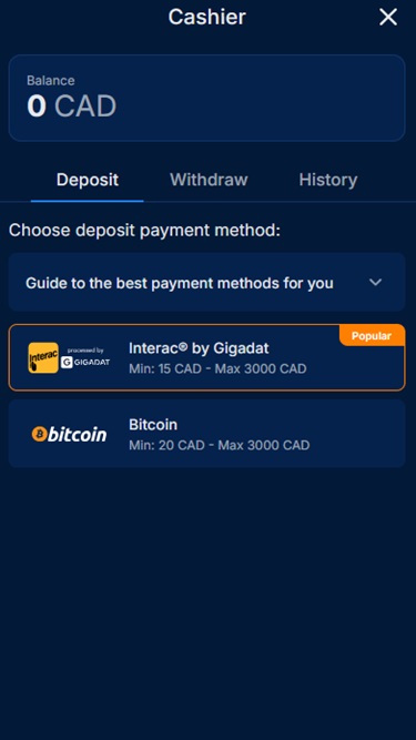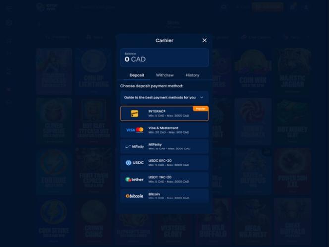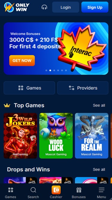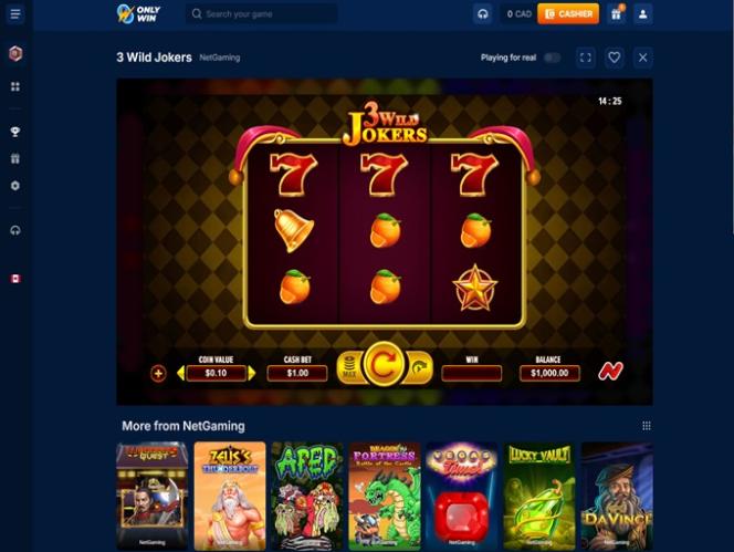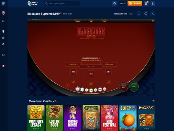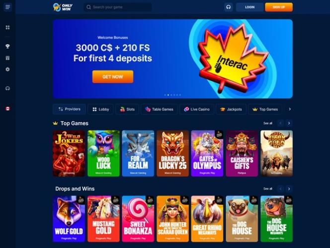 O OnlyWin Casino aceita exclusivamente jogadores do Canadá em seu site.
